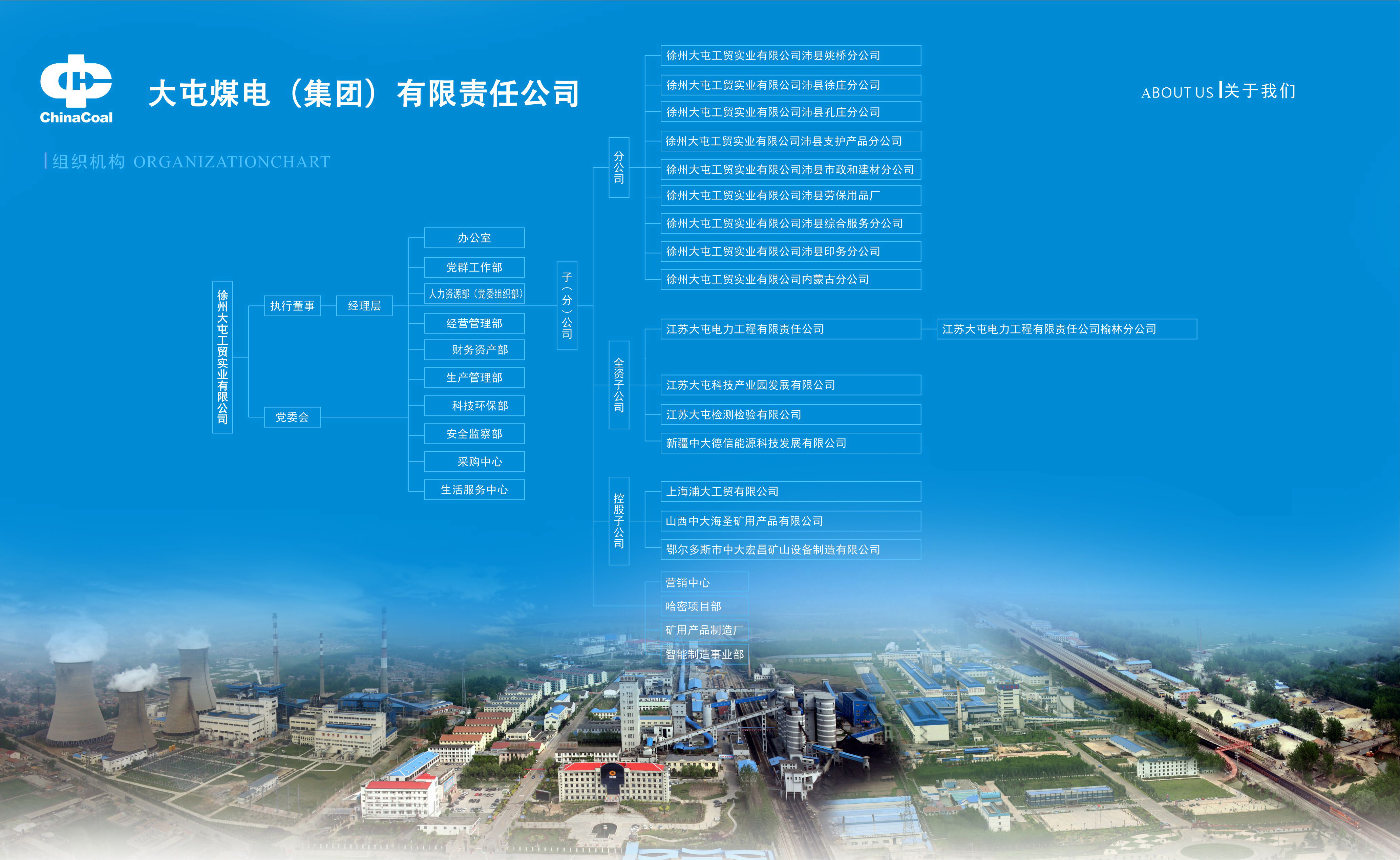 徐州大屯工貿實業(yè)有限公司(以下簡稱“實業(yè)公司”)隸屬于中國中煤能源集團有限責任公司(以下簡稱“中國中煤”),是大屯煤電(集團)有限責任公司(以下簡稱“大屯公司”)的全資子公司,其前身是成立于2006年11月的徐州大屯工貿實業(yè)公司,2019年11月,改制為徐州大屯工貿實業(yè)有限公司?,F(xiàn)有12家分公司和8家子公司,注冊資本2.2億元。截至2024年年底,實業(yè)公司資產(chǎn)總額為53,356.93萬元,從業(yè)人員474人,其中具有各類職稱的技術人員157人,中級以上職稱的技術人員125人。